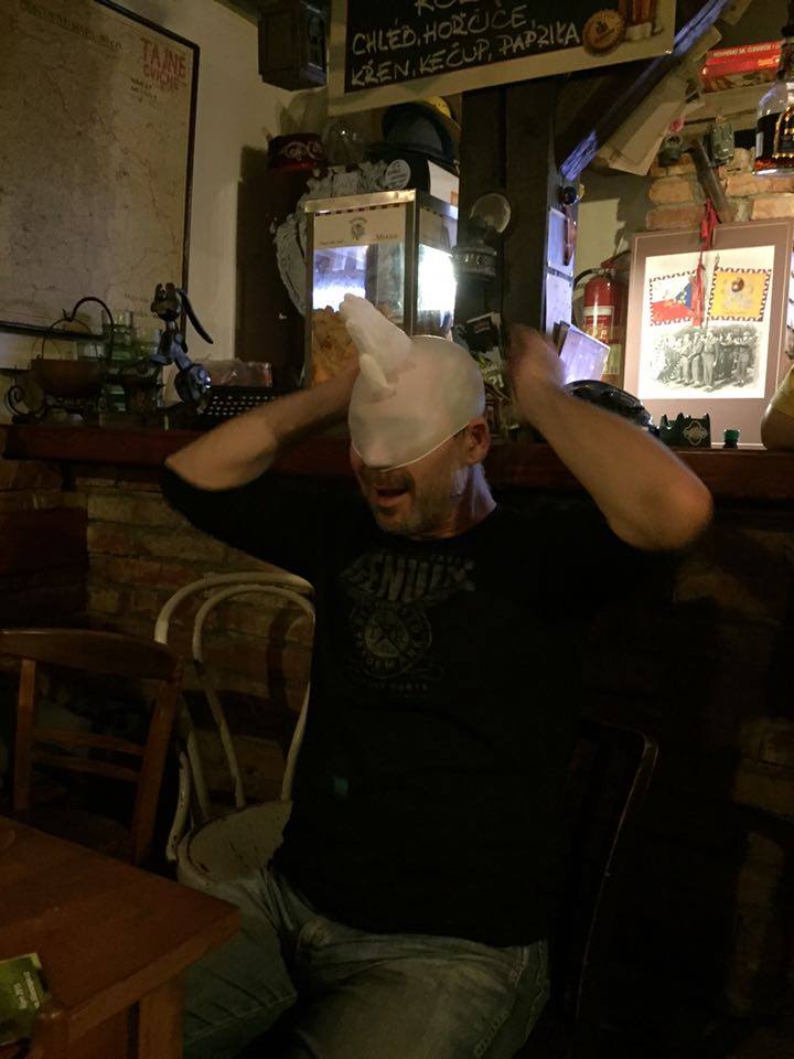 No pak už jsme jeli rovnou do KŠH, kde jsme oba chlapce, navlékli do plastových pytlů, aby jejich oblečení příliš neutrpělo a pak již začalo tradiční křtění tentokrát ne jen pípy, ale i Horolezce a Metrosexuála 🙂 !!!