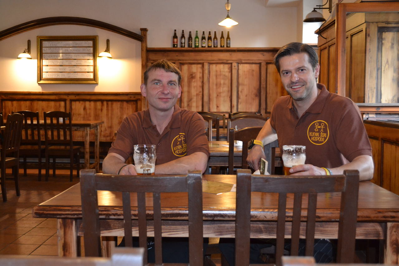 „Nevíme, jak to bude tady, přece jenom máme první otvírací den. Ale samozřejmě bychom byli rádi, kdybychom měli plno i tady,“ říkají provozovatelé restaurace Jiří Bajgar a Petr Kmetík.